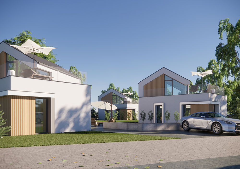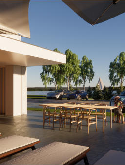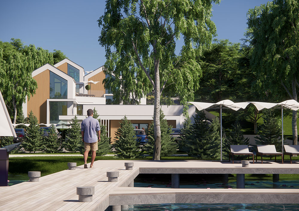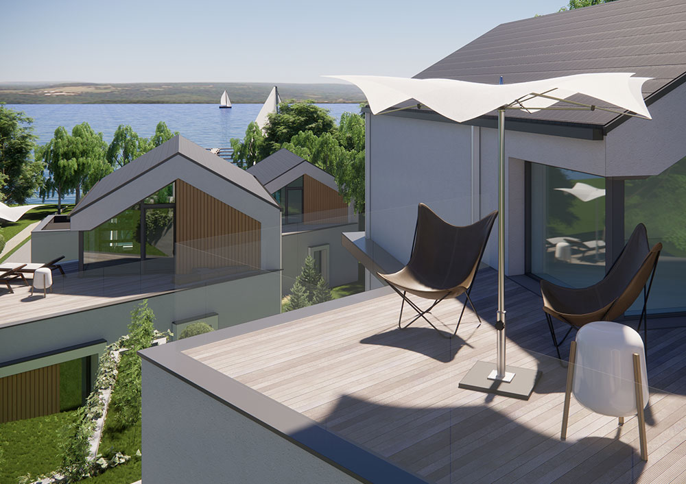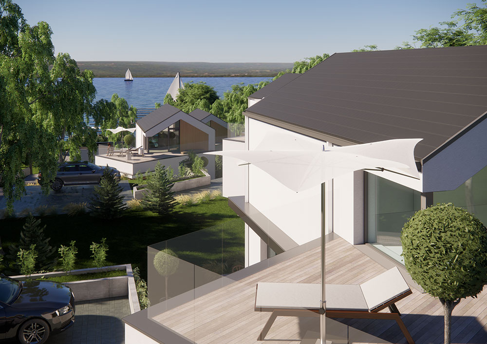 Panoramiczne przeszklenia, starannie dobrane materiały i architektura harmonijnie wpisująca się w otoczenie. Każdy dom zaprojektowano z myślą o komforcie i wypoczynku — przestronne tarasy, prywatne ogrody oraz strefa dzienna z widokiem na jezioro tworzą idealne warunki do życia. Wnętrza są ergonomiczne i przemyślane w każdym detalu, zapewniając maksymalną funkcjonalność i wygodę na co dzień.